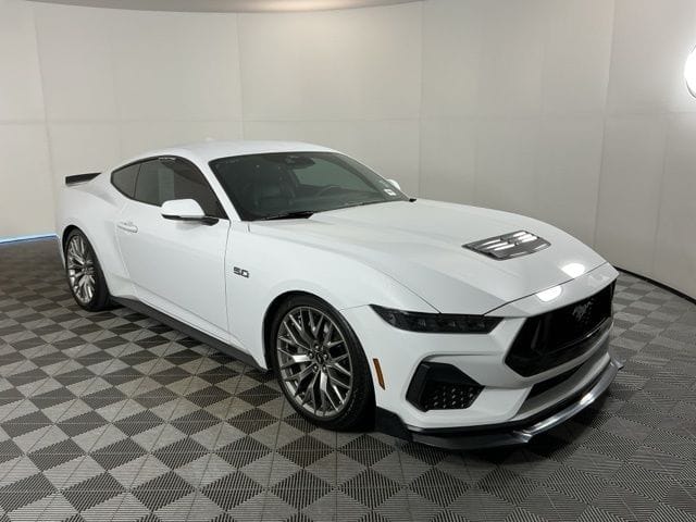 Recent Arrival! CARFAX One-Owner. Clean CARFAX. Oxford White 2025 Ford Mustang GT Premium 2D Coupe 5.0L V8 Ti-VCT 10-Speed Automatic RWD LOCAL TRADE , CARFAX ONE OWNER , CARFAX ZERO ACCIDENTS , Active Anti-Theft System, Connected Navigation, Driver Seat & Mirrors Memory, Equipment Group 401A High Package, Ford Co-Pilot360 Assist+, Illuminated Door-Sill Scuff Plates, Integrated Turn Signals, Leather-Trimmed Bucket Seats w/Color Accents, Locking Center Console, Pre-Collision Assist w/Automatic Emergency Braking, Security Package, Wheel Locking Kit, 20" Wheels, 4-Wheel Disc Brakes, 9 Speakers, ABS brakes, Active Valve Performance Exhaust, Air Conditioning, Alloy wheels, AM/FM radio: SiriusXM with 360L, AM/FM Stereo, Auto High-beam Headlights, Auto-dimming Rear-View mirror, Automatic temperature control, Brake assist, Bumpers: body-color, Climate Controlled Heated/Cooled Front Seats, Compass, Delay-off headlights, Driver door bin, Driver vanity mirror, Dual front impact airbags, Dual front side impact airbags, Electronic Stability Control, Emergency communication system: 911 Assist, Exterior Parking Camera Rear, Four wheel independent suspension, Front anti-roll bar, Front Bucket Seats, Front Center Armrest, Front dual zone A/C, Front reading lights, Fully automatic headlights, Garage door transmitter, HD Radio, Heated door mirrors, Heated front seats, Heated steering wheel, Illuminated entry, Instrument Panel w/Accent Stitch, Internet access capable: FordPass Connect, Knee airbag, Leather Shift Knob, Leather steering wheel, Leather-Trimmed Bucket Seats, Low tire pressure warning, Occupant sensing airbag, Outside temperature display, Overhead airbag, Overhead console, Panic alarm, Passenger door bin, Passenger vanity mirror, Power door mirrors, Power driver seat, Power passenger seat, Power steering, Power windows, Radio data system, Rain sensing wipers, Rear anti-roll bar, Rear Parking Sensors, Rear window defroster, Remote keyless entry, SiriusXM w/360L, Spee